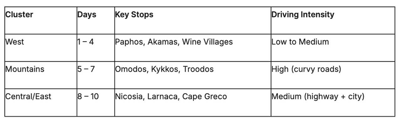 - No daily hotel changes: You can base yourself in two to three key locations (e.g., Paphos and Larnaca) and do day trips.