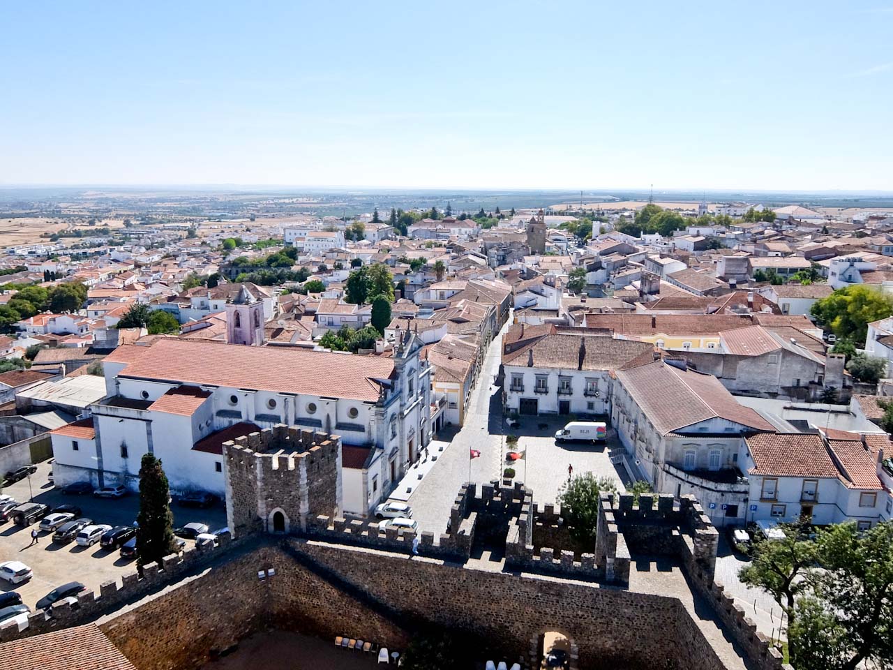 At the heart of Beja stands the Castelo de Beja, whose imposing keep rises proudly above the city. Built in the 13th century under King Dinis, the tower is one of Portugal’s finest examples of Gothic military architecture. Climb its spiral staircase to the top, and you’re rewarded with sweeping views of the Alentejo plain. Below, red-tiled roofs cluster around cobbled streets, while the white spire of the cathedral glimmers in the sunlight.