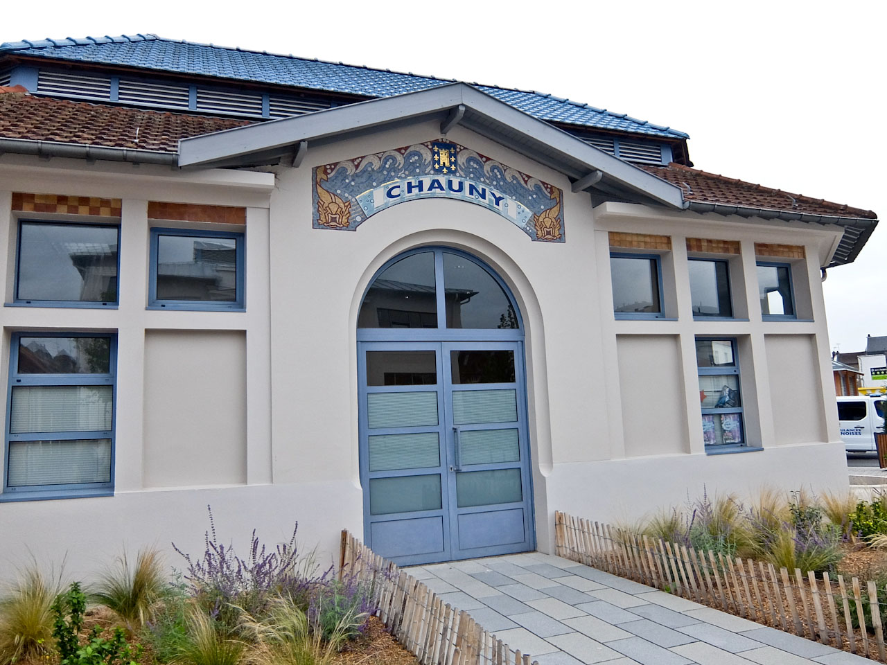 Fortunately the rain has stopped and I cycle ten minutes into Chauny. Most it was destroyed during WW1 but it was rebuilt in the ‘art deco’ style in the 1920’s. You can see this clearly on the buildings’ facades and the most beautiful examples include the interior of the town hall, the fish market and the two churches.