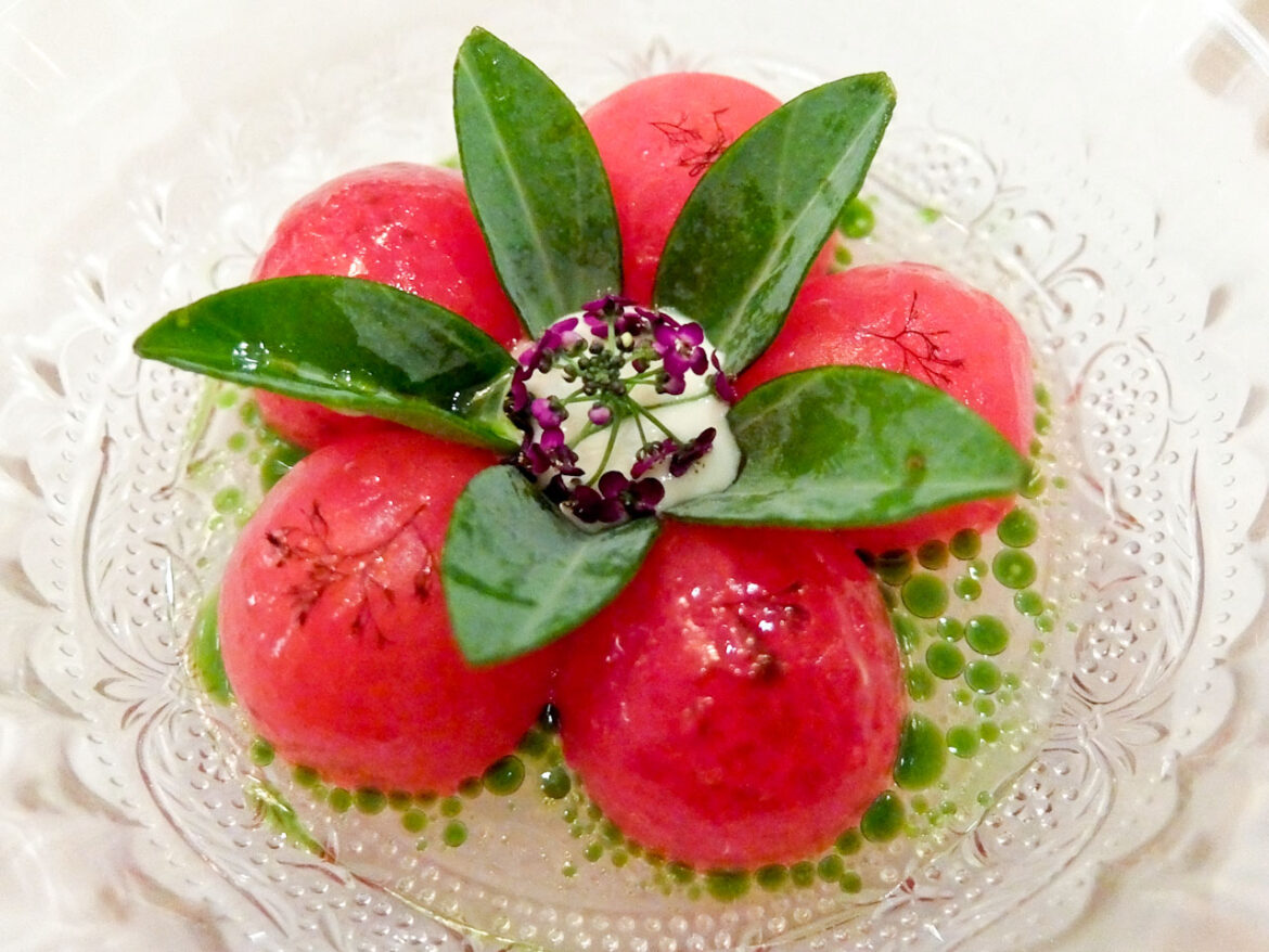 I get to spend a morning with him on the shores of Trondheim Fjord where my job is to pick my own lunch. Fortunately, he’s there to help me identify everything edible – plants, flowers and seaweed all go in my basket, but I spot the wild raspberries on my own. We end up with fragrant meadowsweet, wood sorrel, yarrow, pea plant, ground elder and even nettle tops. This delicious salad is topped with smoked reindeer, and dressed with his homemade ramson (wild garlic) mayonnaise.