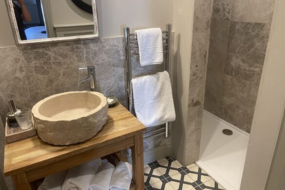 Our room was Leet 2 which has a small courtyard and its own entrance from the restaurant terrace. The spacious room has an attractive shower/wet room with Molten Brown toiletries and it comes with a Nespresso machine and a mini-bar. We had bedside treats of mineral water, with crystal glasses to sip it from, ‘naturally delicious’ crisps and a jar of gummies.