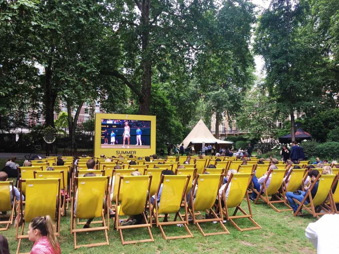 Where better to watch Wimbledon for free than London’s most beautiful square – sit back and relax on a deck chair with a cocktail in hand. Each event runs from 12-8pm so there’s ample opportunity to visit; whether you change your lunchtime habit, meet up with friends after work or just while away a perfect English summer’s day.