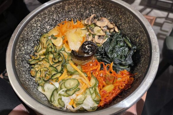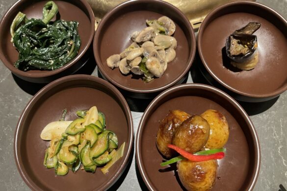 An amuse bouche of Yangban Sang Cha Lim – tomato and grape arrives offering a tangy palate cleanser. Soon after, this was followed by various appetisers compiled by the chef. This included the highly flavoursome Japchae noodles marinated with soya and sesame oil, potato pancakes, and several other vegetables and highly herbed small plates called namul.