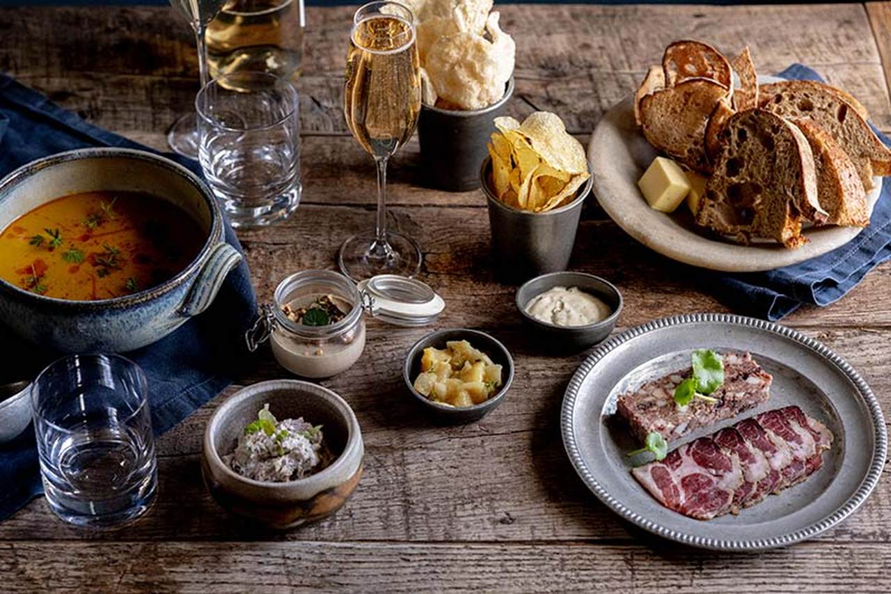 The Farmers Arms restaurant – the menu focuses on seasonal often foraged ingredients.